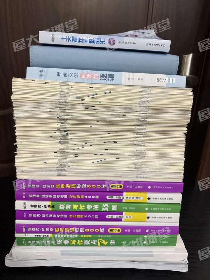 管综对我而言是一个完全陌生的领域,3月份跟着屋大维课堂的课程系统学习时,内心充满忐忑。我的策略是:“一课一总结”,抓住重难点;紧跟课后练习,刷题并深究错题;后期则反复研磨真题。到考前,近10年的管综真题我已精刷了4遍。除了报班的资料和课程之外,为了更深入扎实的学习,我还接连购买了其它的考研书籍资料,反复钻研练习。看着家中堆积如山的资料和日益充实的笔记,每一步都走得踏实。